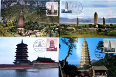 风光类是相对容易制作的,首先是片源多,以中国风光为例,天安门、故宫、长城、西湖、桂林山水、长江三峡、三山五岳、三大名楼等,各种版本的明信片很多,对位明信片也不少,制作起来并不困难,但有些风光却不容易找到合适的明信片,如北京立交桥、震后新唐山、上海浦东、红旗渠等很难碰到合适的片子。