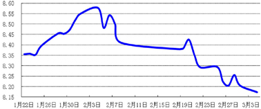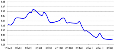 本周人民币兑美元中间价随外盘小幅走强,即期价格周五尾盘收报6.2237元,累计升值0.18%,欧元兑美元尾盘收于1.302美元。