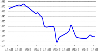 上周美国公布的非农就业数据大超预期,同时2 月失业率也自7.9%降至7.7%,为2008 年12 月以来新低。市场对美联储提前结束资产购买的担忧加剧,加之全球风险资产上涨带来的资金分流,黄金和原油市场走势平淡,全周维持横盘整理态势。