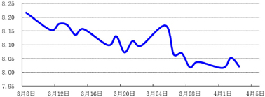 上周人民币兑美元中间价延续上升态势,并且周二击破6.2600整数关口,创汇改来新高,受清明节假期影响,上周只有三个交易日,中间价较前周上涨0.13%;欧元兑美元上涨1.33%,报1.2989美元。