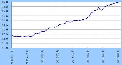 上周,人民币对美元即期成交价累计走高0.17%,周五盘中首破6.13元,再创新高,即期价盘终收于6.1316元。