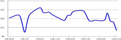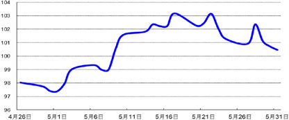 上周,国际金价呈震荡走势,先是突破1400美元/盎司,之后在美国5月芝加哥PMI指数和密歇根大学消费者信心指数远超预期影响下,再次跌破1400美元/盎司,全周仅微涨0.85美元/盎司至1386.40美元/盎司;布伦特原油下跌2.25美元/桶至100.39美元/桶。