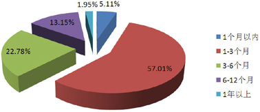 1-3个月期限类型产品共发行5901款,较上季度增加799款,增幅为15.66%;市场占比较上季度上升2.35个百分点至57.01%。受年中因素以及6月流动性紧张事件的影响,3个月以下的短期理财产品发行量大幅增长。