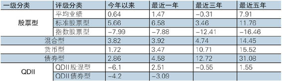 各类型基金业绩表现(截至2013年6月底)