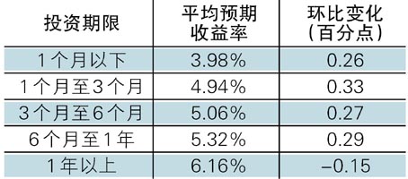 收益表现:产品平均预期收益率升至5%水平,1-3个月期产品升幅最高