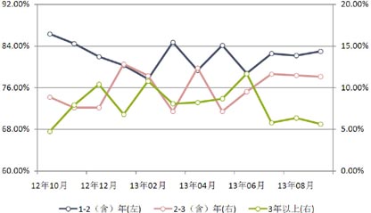基础设施领域产品占比明显反弹,与近期经济情况好转有关,还由于该领域产品发行量对收益率不敏感,其他领域产品推迟发行导致该领域产品占比升高。该领域今后的情况需要由地方债务审计结果及三中全会确立的财税改革方案决定。(图7)