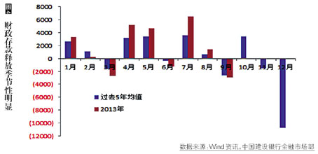 预计11月份流动性将有改善趋势,主要原因有二:第一,受美联储QE退出的延后和人民币升值的双重影响,商业银行结售汇顺差将维持前两月增长态势,进而带动外汇占款增势的保持;第二,财政存款有所释放。过去五年10月份平均上缴财政存款3444亿元,而11月份平均释放1540亿元,在“盘活存量”的政策指引下,预计今年11月和12月的财政存款释放比往年更积极。(图3、4)