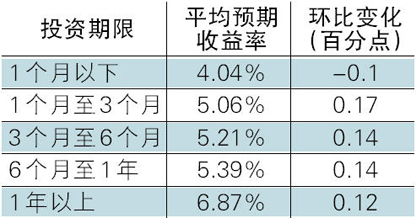 收益表现:产品平均预期收益率上升,1个月至3个月期产品涨幅最高
