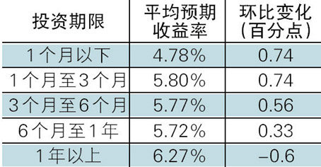 收益表现:受年末因素影响,除1年以上期产品外其他期限产品收益普涨