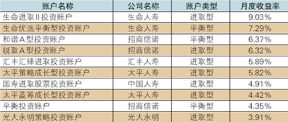 表2 2014年1月投连险投资账户收益表现TOP10