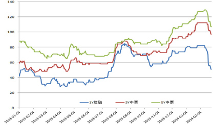 外汇占款方面,如果此轮央行主动干预的人民币贬值在3月份延续,相应央行在外汇市场买入美元卖出人民币,在资本未出现大幅流出的前提下,人民币流动性仍将维持宽松。而且,央行在2013年四季度货币政策报告中再次强调“保持适度的流动性”,央行近期货币政策采取“偏紧”的可能性较小。对3月资金面不利的因素主要为缴税、季末等季节性因素。总体上看,3月资金面走势先松后紧,预计7天回购利率中枢在4.0%-4.4%。
