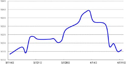 债券市场:上周,受银行间市场资金面维持宽松以及3月贸易数据疲弱的影响,债券需求增加,银行间债市震荡走强,中债总指数小幅上升0.27至143.07。