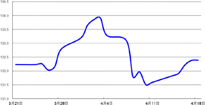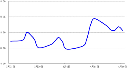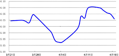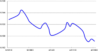 上周,因陆续公布的三月份及一季度经济数据好坏参半,市场无法从中得到方向性指引,企业对人民币后市走势预期仍有分化,人民币对美元即期市场成交价呈窄幅波动,当周累计贬值0.21%,周五收于6.2242元。