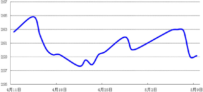 因五一节后市场购汇力量明显减少,人民币对美元即期市场成交价中止了此前连续三周贬值走势,当周累计收高0.5%,周五收于6.2272元。人民币短期价格走势料将持续盘整,等候更多方向性指引。