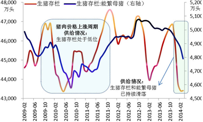 通胀:一季度CPI同比涨幅为2.3%,居民消费价格继续维持弱势。其中非食品价格走势平稳,而食品价格受到蔬菜和猪肉价格颓势的拖累而现环比下跌态势。总体来看,短期内的通胀压力依然不大。而中长期内的涨价风险,一方面来自资源要素价格改革对非食品成本的推升,以及居民消费升级对服务业价格的拉动作用;另一方面则来自生猪存栏和能繁母猪数量持续下降后,猪价重新进入上涨行情的可能性。工业品价格方面,通缩压力依旧显著,PPI同比年内回正的可能性较低,再次印证内需之疲弱与经济增长动能之不足。(图3、4、5)