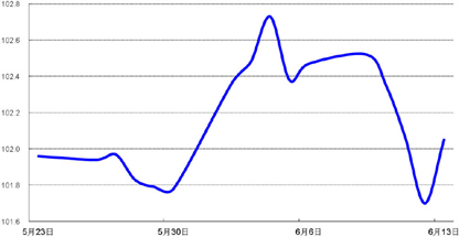 上周,人民币对美元中间价连续高开,当周中间价累计升值0.20%,带动市场对人民币短期升值预期升温;人民币对美元即期市场成交价当周大幅波动后累计上涨0.66%,令年初至今的跌幅缩至2.50%。