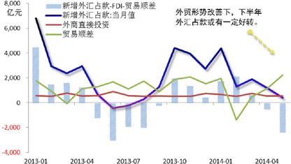 1-5月累计新增外汇占款规模为9104亿元,同比减少6662亿元。其中,5月外汇占款新增规模仅为387亿元,剔除贸易顺差和外商直接投资后的5月末外汇占款余额较上月减少2360亿元人民币,跨境资本流出情势进一步加剧。