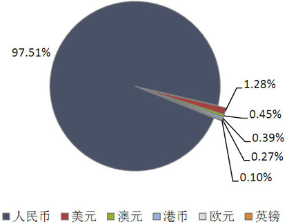 从投资币种来看,人民币产品发行4782款,环比减少54款,市场占比上升0.56个百分点;美元产品发行63款,环比减少15款,市场占比下降0.28个百分点;澳元产品发行22款,环比减少7款,市场占比下降0.13个百分点;港币产品发行19款,环比减少2款,市场占比下降0.03个百分点;欧元产品发行13款,环比减少3款,市场占比下降0.06个百分点;英镑产品发行5款,环比减少3款,市场占比下降0.06个百分点。(图2)