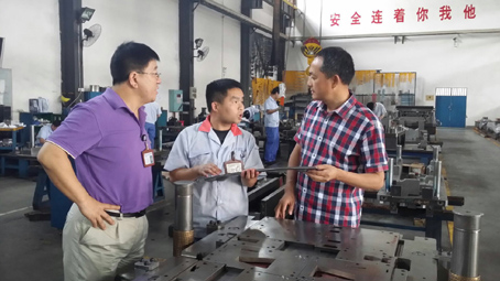 姚国基到出口制造企业湖南磐吉奥调研(右一为姚国基)。