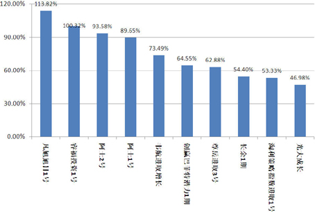 从表现最好的产品收益情况看,大多数排名前十的产收益率在(25%,40%)区间内,这样的产品共有9款。(图10)