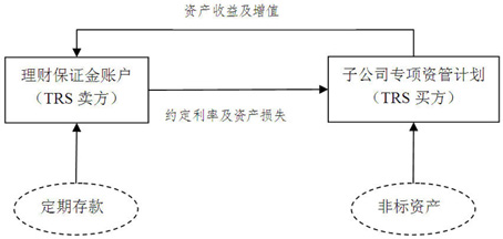 民生银行曾推出的创新产品——“中国民生银行信用挂钩总收益互换(TRS)产品”是“非标转标”的典型案例。该产品对应的理财资金挂钩非银金融机构资产管理计划的投资收益,实现总收益互换衍生品交易,零售端对接“民生银行非凡信惠系列”理财产品。其操作流程可分解为两部分(参见图3 )。