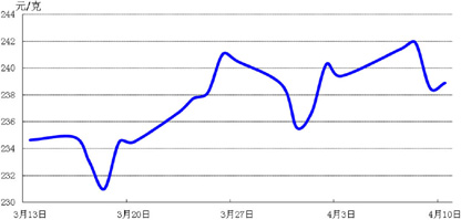上周,因市场投资者对美国将在今年升息的预期升温,美元走强,国际金价小幅下跌,周五收盘于1207.65美元/盎司,较前一周下跌0.21%。