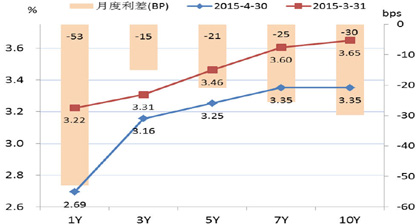 3.5月份仍有降息或降准机会。一是新近公布的3月CPI为1.4%,与上月持平,通胀整体维持低位,叠加国际油价下跌带来的输入性通缩影响,货币宽松有较大的宽松空间。二是近期美国公布的经济数据喜忧参半,3月非农数据大幅逊于预期,令市场对美联储加息前景产生疑虑,人民币贬值压力减弱,有益于货币宽松政策推出。三是李克强4月在东北地区视察时发表讲话称,中国经济正面临着越来越大的下行压力,经济改善亦需要货币宽松的支持。同时,今年3月金融机构口径外汇占款减少1564.76亿元,下降幅度为2007年以来最大,外汇占款大幅负增长也很有可能使央行再次降准。