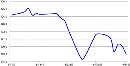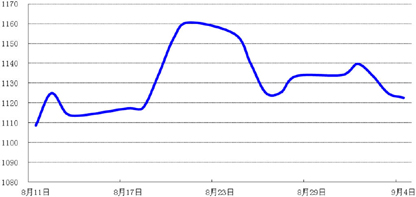 上周,因投资者对国际金融市场动荡的恐慌情绪有所缓解,黄金的避险需求下降,加之美元整体走强,拖累国际金价表现,周五收盘于1122.6美元/盎司,当周累计下跌约1%