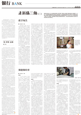 在“珠三角”,走访企业的过程是一次发现之旅,我们感到,企业如同自然界中的生物,有极强的个性特征,又与当地的人文经济环境息息相关。不同地区如此,同一地区不同行业亦如此。因此,对应的需求也不同,金融机构给予的服务从模式到内容也必然不同。粤港经济以及前海等金融改革吸引了众多眼球,我们试图以我们的走近目睹改革的蓝图,三天时间的采访无法勾勒出清晰的蓝图结构,但依然可以感受到政府在积极设计框架,银行在加速转型,而最触动我们的是独立的民营企业主们早在危机到来之时的主动转型。市场经济就是达尔文进化论在经济领域的表现,历来经济活跃的广东,总在先知先觉中寻找生机。