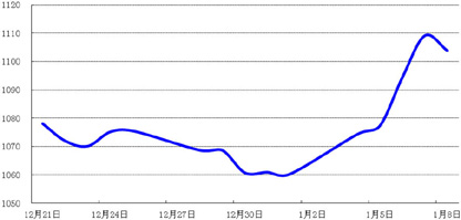 因全球金融市场动荡,避险情绪的升温推高了金价,上周五,国际金价收盘于1103.84美元/盎司,较前一周上涨4.11%