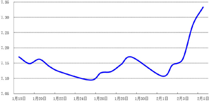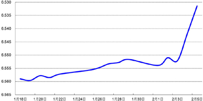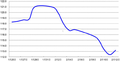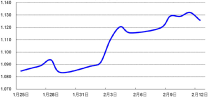 春节前,因美元下行,人民币对美元中间价相应调升,即期市场成交价随之走高,当周累计小幅升值0.14%。春节期间,美元指数继续下行,欧元和日元作为避险资产和低息融资货币,相对美元汇率大幅提高,欧元对美元一度高于1.13,日元对美元从120直线升值逼近110。