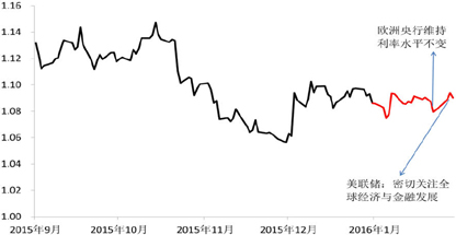 目前来看,对欧元汇率影响最大的是美联储的加息前景。美联储201512月曾暗示2016年将4次加息,但市场普遍认为不会超过3次。美联储1月货币政策会议声明中提出正在评估全球经济和金融市场状况对就业市场和通胀的影响,并未对未来的加息路径给出进一步的暗示,这进一步增强了市场对美联储难以实现加息目标的预期,目前市场主流预期认为美联储不会在3月再次加息。