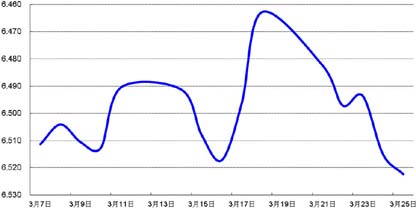 上周,受美元指数连续6日走升影响,人民币对美元即期市场成交价走弱,脱离了前一周创下的年内新高。周五收报6.5154,当周微幅下跌0.66%。