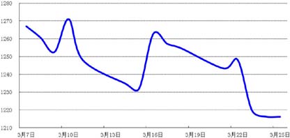 上周,因美联储多位官员公开表示除非美国经济形势出现恶化,否则美联储不会进一步延迟加息时间,引发美元强势反弹,国际金价承压,周五收盘于1216.10美元/盎司,较前一周小幅下跌3.07%。