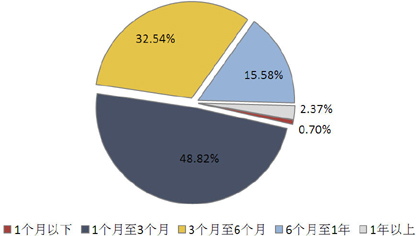 公布期限的205款产品中,1-2(含)年期限段产品发行了167款,占比为81.46%,环比下降3.41个百分点;2-3(含)年期限段产品发行了25款,占比为12.20%,环比上升3.37个百分点;3年以上期限段产品发行了13款,占比为6.34%,环比上升0.04个百分点。