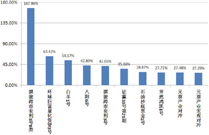 从表现最好的产品收益情况看,月度收益率前十的产品中,有8只成立不到一年,绝大多数产品带有杠杆。(图10)