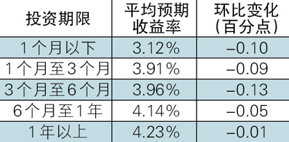 收益表现:银行理财产品收益水平继续下滑,半年以内期限产品进入“3”时代