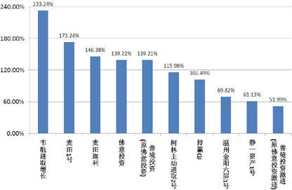 从表现靠前的产品来看,排名前十的产品中只有1只为股票型,其余为期货型;麦田投资和上海善境投资各有两只。(图8