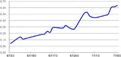 上周,因欧元和英镑持续走弱,美元走强,人民币对美元中间价走低,并于周三触及近五年半低位6.6857;即期市场成交价也跟随中间价走弱,最低触及6.6980,周五收于6.6881,较前一周贬值0.45%。