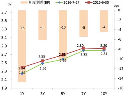 2016年7月债券市场回顾:债券收益率下行,信用利差收窄