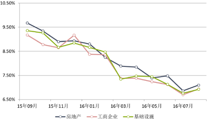 从收益方面来看,1-2(含)年期限段产品平均预期收益率为6.91%,环比上升16.62BP,其中,房地产领域平均预期收益率为7.10%,环比上升23.65BP,工商企业领域平均预期收益率为6.94%,环比上升24.19BP,基础设施领域平均预期收益率为6.92%,环比上升16.11BP;2-3(含)年期限段产品平均预期收益率为6.93%,环比上升36.60BP,其中,房地产领域平均预期收益率为8.70%,环比上升270.00BP,工商企业领域平均预期收益率为6.50%,环比上升50.00BP,基础设施领域平均预期收益率为7.30%,环比上升65.76BP;3年以上期限段产品平均预期收益率为6.28%,环比上升41.67BP,其中,工商企业领域平均预期收益率为6.43%,基础设施领域平均预期收益率为6.50%。(图6)