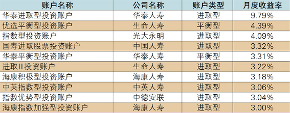 投连险账户业绩表现:月度平均收益率为0.96%,华泰人寿进取型投资账户表现最佳