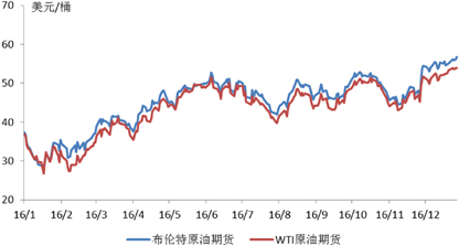 在考虑到以上不确定性的情况下,预计2017年布伦特和WTI原油价格波动区间分别为[45, 65]和[43, 63]美元/桶。
