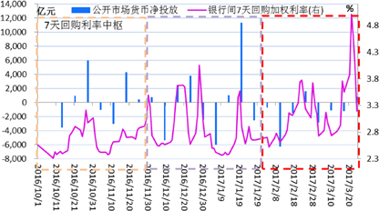 2017年一季度7天期回购利率季度中枢较2016年四季度的2.80%上行25bps至3.05%,受央行上调政策利率、公开市场持续回笼资金、春节及季末因素影响,资金面整体偏紧并且利率波动加大。(图2)