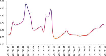外汇市场:上周,英国首相特雷莎·梅宣布提前举行大选,英镑快速上涨,美元指数相应承压,大多在100下方波动。人民币兑美元价格维持窄幅区间波动,周五收于6.8838,较前一周小幅上涨0.05%。