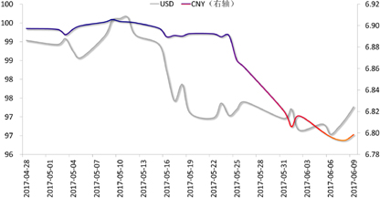 离岸人民币市场:上周,离岸人民币流动性充裕,各期限掉期点均有不同程度的下跌。受5月外汇储备连续4个月回升和强势的人民币中间价影响,离岸人民币汇率强势震荡,当周微跌100个点。预计本周离岸人民币将继续保持平稳。