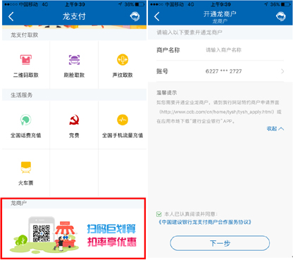 95533答:如您已签约了建行手机银行并开通了龙支付,便可自主申请成为龙商户,绑定储蓄卡进行二维码收款,操作流程为:登录手机银行,进入龙支付页面,点击下方的龙商户宣传框,根据提示填写商户名称、绑定收款银行卡,阅读并同意协议后点击“下一步”即可。(客户服务中心)