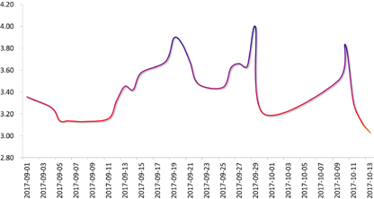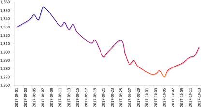 外汇市场:上周,由于欧洲经济数据强劲、西班牙政治风险暂缓和美联储9月会议纪要不及预期鹰派, 美元指数震荡下跌,人民币顺势上涨。加之十九大召开在即,央行行长周小川呼吁放松外汇管制,市场看多人民币情绪升温,但由于客盘购汇力量增强,人民币回吐部分涨幅,周五收于6.5868,当周累计上涨0.91%。短期人民币料将延续区间波动。