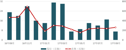 9月下旬,银行业理财登记托管中心发布《中国银行业理财市场报告(2017上半年)》。报告显示,截至6月底,全国银行业理财产品存续余额为28.38万亿元,较年初减少0.67万亿元;上半年末较去年同期增长8%,增速下降35个百分点。另外,有媒体报道,9月银行业理财规模增速下滑到4%,为历史低点。增速放缓的主要原因在于监管层对同业理财的重点治理,令其规模和占比均下降明显:6月末,金融同业类产品存续余额为4.61万亿元,较年初减少2万亿元;同业理财余额占比为16.24%,较年初下降7个百分点。由于目前同业业务的监管措施仍在推进,因此未来理财去同业化趋势不改,对理财规模的增长将产生冲击。