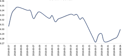 上周,美元指数先扬后抑:周初,因中美贸易紧张局势有所缓和,市场风险情绪改善,美元指数企稳回升;但随后,中美双方公布加征关税商品清单,贸易摩擦进一步升级,加之美国公布的3月非农就业数据不及预期,美元指数承压下挫,周五收于90.108,较前一周升值0.15%。人民币表现相对疲弱,人民币对美元即期市场收盘价连跌三日,4月4日收盘于6.2999,较前一周贬值0.42%。